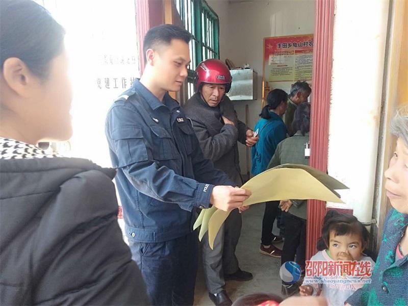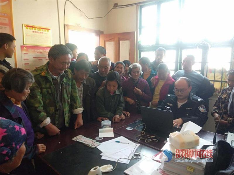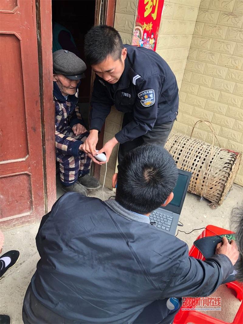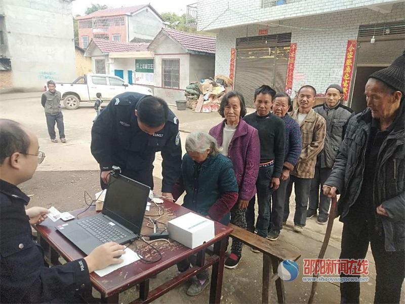 邵阳新闻在线讯(通讯员 刘翔)4月27日上午9时,新宁县丰田乡派出所民辅警带着移动指纹采集设备来到了丰田乡龟山村开展指纹采集。在民警的悉心指导下,村民们依次有序地进行了第二代居民身份证指纹信息采集。