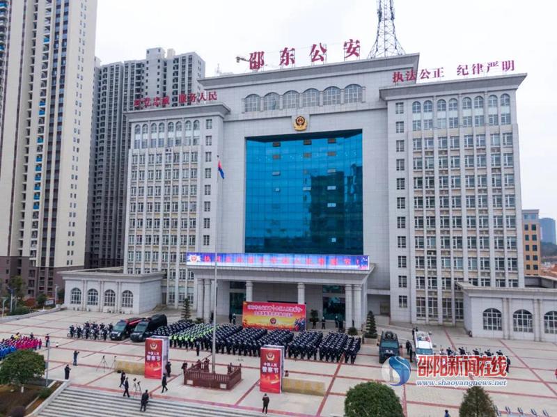 1月10日上午,邵东市公安局举行升警旗仪式暨“警营开放日”活动。全体局党委班子成员、机关单位、巡特警、派出所民警、交警、退休干部及一村一辅警代表共8个方阵350余人参加升旗仪式。市人大代表、政协委员、优化经济环境特邀监督员、媒体代表、民辅警家属、群众代表、中小学生等社会各界代表观摩升旗仪式。