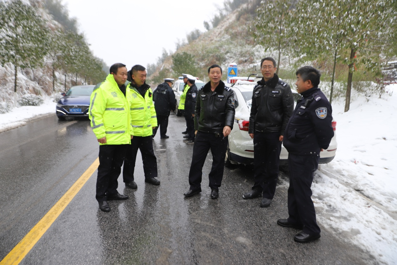 邵阳长安网讯(通讯员 吴艳红 邓凭凭)12月25日起,受强冷空气影响,新邵迎来了入冬以来的首次大降温,新邵范围内普降大雪,新邵交警大队迅速启动应对低温恶劣天气安全管理应急预案。连日来,大队教导员曾继武,副大队长聂晓红深入一线督导检查雪天道路交通管理工作。
