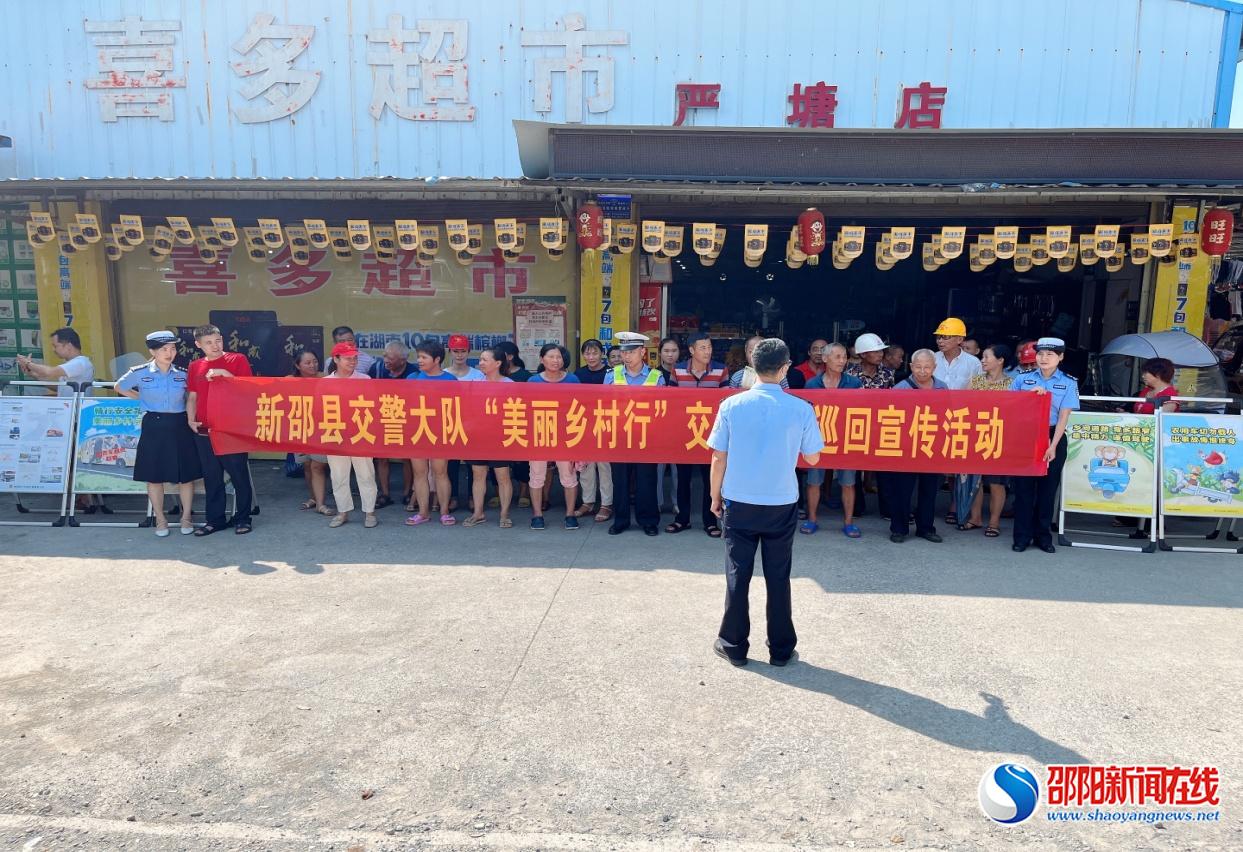 邵阳新闻在线讯(通讯员 吴艳红 唐扎花) “交警来这里,不仅给我们宣讲交通安全知识,还送给我们礼品,真的太好了!”7月18日,在新邵县严塘镇喜多超市门口,领到新邵交警大队开展“美丽乡村行”交通安全巡回宣传活动的礼品,村民们都十分高兴。