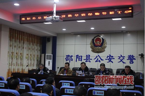 邵阳新闻在线讯(通讯员 刘惠芳)2017年春运工作已开启,为了确保春运期间的道路交通安全,1月19日晚,邵阳县交警大队在六楼会议室召开春运道路交通安全誓师大会,会上提出,春运期间大队将多措并举,采取增加路面警力部署,优化道路交通组织,严打各类交通违法,加强企业源头管控,排查交通事故隐患等多项措施,确保春运期间群众出行的安全与畅通。