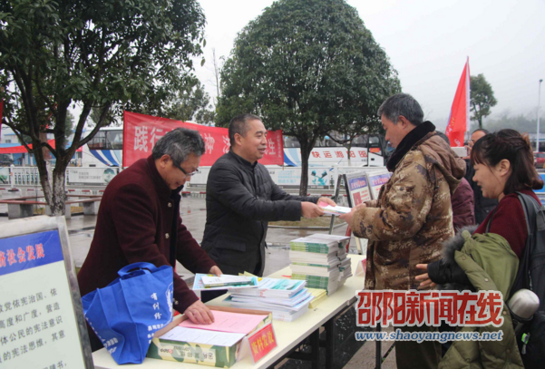 邵阳新闻在线讯(通讯员 唐于亮 刘毅)2月7日,新邵县司法局组织“法润三湘”志愿者新邵大队深入沪昆高铁邵阳北站,开展2017年春节送法下乡活动。