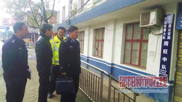 图为邵阳交警支队领导检查乡镇交警中队建设落实情况