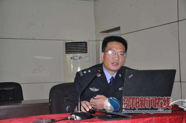 该大队中队长法制专业宣讲员刘朝晖讲课。