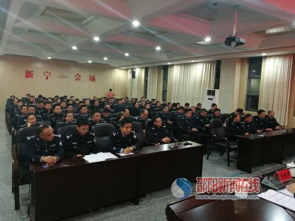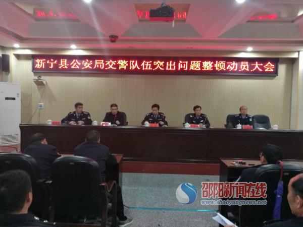 邵阳新闻在线讯(通讯员 陈贵清)4月26日晚上19:30分,新宁县公安局交警大队在崀山国际会展中心组织召开队伍突出问题整顿动员大会,传达近日公安部交通管理局召开的全国交警队伍突出问题视频约谈调度会议精神和邵阳市交警支队4月20日交警队伍突出问题整顿动员大会精神,并就下一步工作进行安排部署。副县级干部、县公安局政委关军、县委政法委副书记禹超吾、县公安局纪委书记王国荣出席了会议,全队干警、职工、协警116人参加了会议。