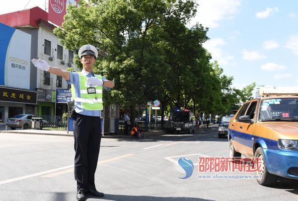 邵阳新闻在线讯(记者 杨敏华 通讯员 李高雄)2017年2月7日,邵阳晚报发了市区汽车南站出口路段有多辆非法营运车在候客,存在安全隐患的报道。此事引起市交警支队大祥大队的高度重视,立即采取加派警力、增设值班岗亭等措施,严厉打击车站周边的非法营运,并及时进行交通疏导。目前,此路段交通秩序良好。图为5月4日,该大队民警正在指挥交通。