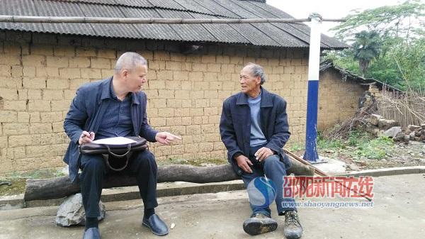 图为邵阳县司法局局长黎新华(左)与困难户促膝谈心