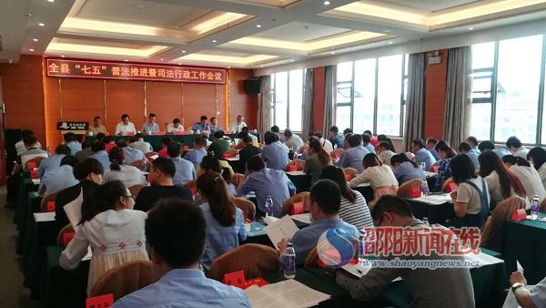 邵阳新闻在线讯(通讯员 陈平常 罗小亮)5月11日上午,邵阳县召开“七五”普法推进暨司法行政工作进会。会议由县委常委、政法委书记周彥主持。县政府副县长、公安局长刘定湘出席会议并讲话。
