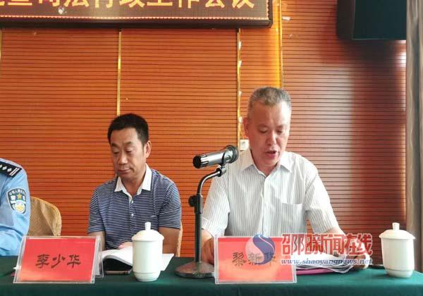 邵阳新闻在线讯(通讯员 罗小亮)5月11日上午,邵阳县召开“七五”普法推进暨司法行政工作会。会议由县委常委、政法委书记周彥主持。县政府副县长、公安局长刘定湘出席会议并讲话。县委办副主任唐丁生,县政府办副主任李少华等出席会议,局机关全体干部职工及退休老同志代表,各乡镇场武装政法委员、司法所长等参加会议。