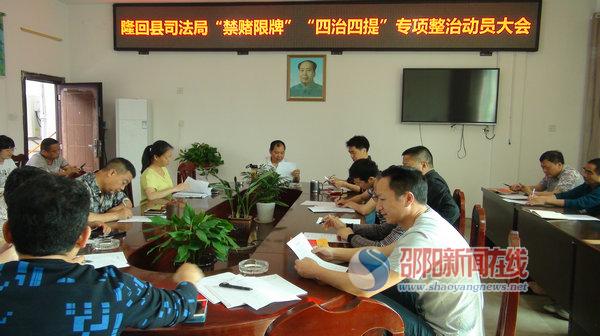 邵阳新闻在线讯(通讯员 李求亮)5月18日,隆回县司法局召开“禁赌限牌”“四治四提”专项整治动员大会。该局全体干部职工参加会议。
