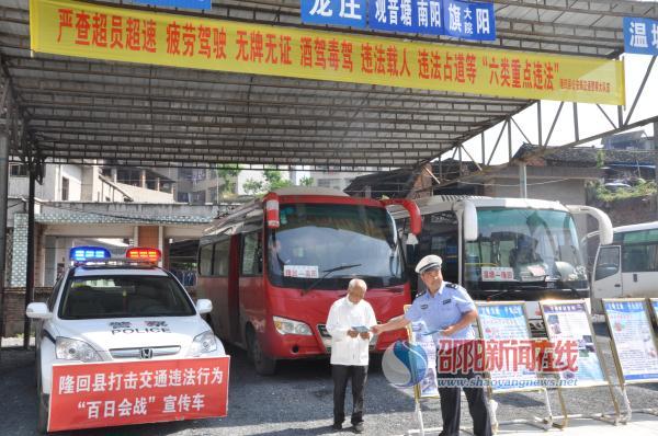 自“百日会战”整治行动开展以来,隆回交警大队共组织开展各类专项宣传活动80余场次,五进宣传54次,开放警营2场(次),播放警示片70余场次,悬挂横幅标语90余条,制作宣传册5万余份,制作宣传展板24块,发放资料4万余份,发送手机短信4万余条,LED电子显示屏宣传3处,报纸、和网络媒体宣传上稿200余篇,发布微信微博155条。