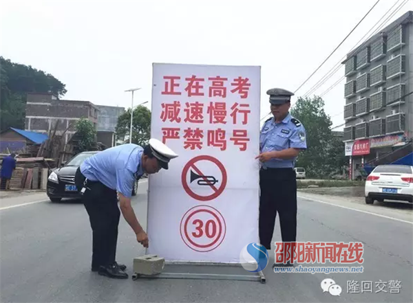 高考期间,隆回交警大队一是在各考场周围划定交通管制区域,在各考点、重点路口、路段设置警戒线,派出专门警力,严禁机动车乱鸣乱放、无关车辆随意进出考点周边路段,保证考生前往考点的交通畅通和考试环境的安静。