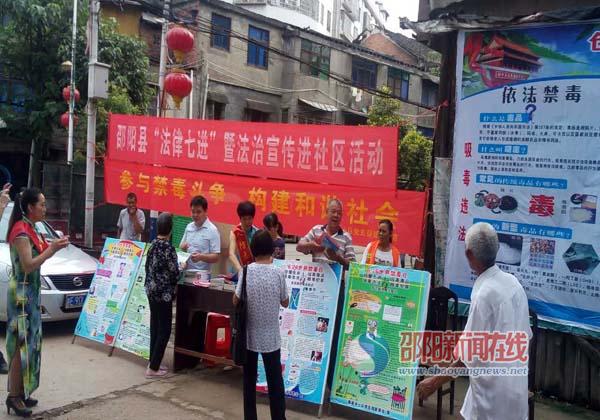 邵阳新闻在线讯(通讯员 罗小亮)为深入推进“法律七进”,进一步增强全县群众的拒毒防毒意识,提高自我抵制毒品侵袭能力。6月24日上午,邵阳县司法局在塘渡口镇大岭社区香路冲小区,组织开展以“法律七进”暨法治宣传进社区活动为主题的禁毒知识宣传教育活动,取得良好效果。