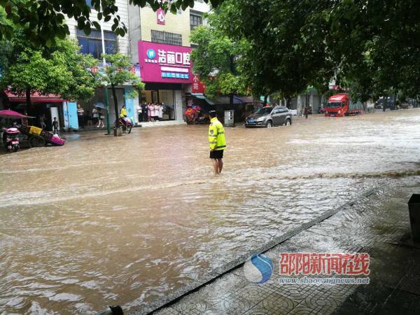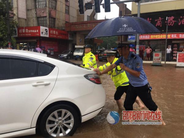 邵阳新闻在线讯(通讯员 陈贵清)今年6月24日以来,新宁县发生持续降雨,加之广西资源县发生大暴雨,夫夷江洪水奔泄。7月1日,一场历史上最大洪峰袭击新宁。当天22时50分左右,夫夷江洪峰水位达到298.11m、流量3150m/s,超警戒水位3.86m,超历史最高水位0.38m,沿江两岸连连告急。崀山镇、金石镇、清江桥乡等地田地民房被淹,群众被困,情况万分紧急。在省、市、县防汛指挥部正确领导下,新宁交警切实将防汛减灾、确保人民群众生命财产安全作为事关全局的头等大事来抓,上下联动,周密部署,不畏艰险,舍生忘死,连续作战,恪尽职守,采取了一系列扎实有效的措施力保我县城区及重要基础设施的防洪安全和交通畅通,工作取得全面胜利。现将各项工作汇报如下: