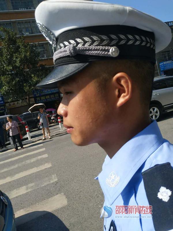 火辣辣的太阳与车辆排出来的尾气叠加在一起,热浪从四面八方涌来,执勤民警的警服已被汗水浸透,额头上也布满汗珠,但他们丝毫没有因为高温而有所懈怠。