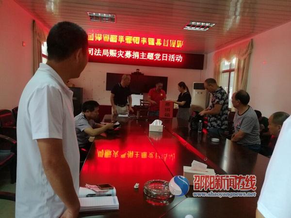 图为邵阳县司法局赈灾募捐主题党日”活动现场