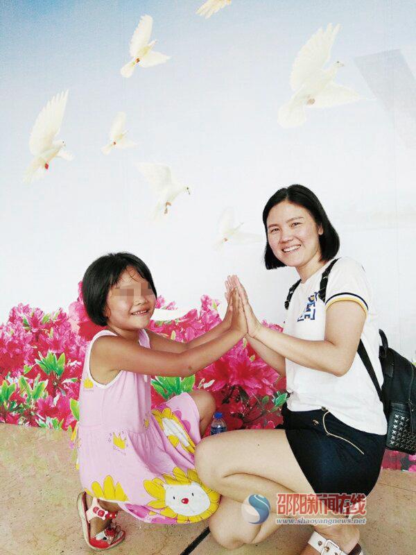在广州科学馆,志愿者钟琼与一名事实孤儿快乐击掌,“希望世界没有战争没有分离”。