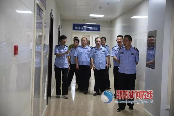 廖华明一行先后来到邵东县公安局受立案管理中心、执法办案中心、执法监管中心参观交流,听取了中心负责人关于各中心建设、运行机制及目前取得工作实效的情况汇报。在执法办案中心,副政委欧明炎带领廖华明一行详细参观了中心的登记安检区、人身安全检查室、信息采集室、讯(询)问区等功能室,认真听取了各个功能室的介绍和工作服务流程。