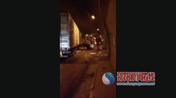 当日晚上9时整,高警局邵阳支队洞口大队接到报警称:在沪昆高速洞口段炉坪隧道内发生一起追尾交通事故,不少乘客被困。接到报警电话后,高速交警火速赶赴现场。在现场,民警看到一辆货车车头横转,后方一辆大巴车与其碰撞,两车车头损毁较重;有不少乘客被困客车上。对此,民警立即做好示警,将乘客转移至安全地带,开展事故调查。