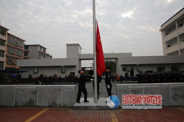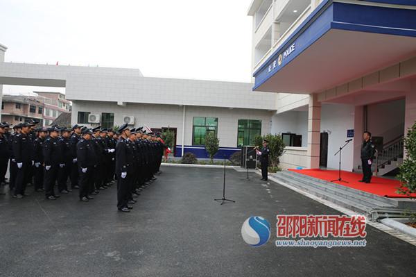 邵阳新闻在线讯(通讯员 何利明)11月23日,邵东县公安局杨桥派出所举行了业务用房建成后的首次升国旗仪式。