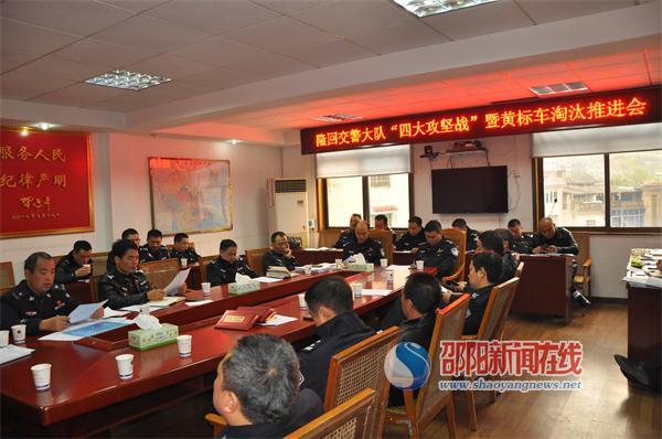 邵阳新闻在线讯(通讯员 彭晓艳)为加强“四大攻坚战”工作的开展,进一步加快黄标车淘汰工作进度,11月24日,在隆回交警大队三楼会议室召开“四大攻坚战”暨黄标车淘汰推进会。县公安局政委黎军出席会议,并作重要讲话,大队班子成员及各中队长参加了会议。