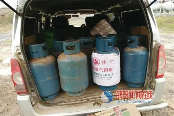邵阳新闻在线讯(记者 刘波 通讯员 伍先安 李娜)20多个满载充好气的液化气罐,邵东男子李某竟然用面包车运送,丝毫不考虑安全。还好,这个“流动炸弹”被交警部门及时排除。