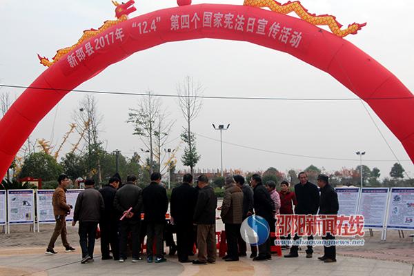 邵阳新闻在线讯(通讯员 谢敏姣)12月4日,新邵县委法治办在新邵县法治文化广场开展了以“学习贯彻党的十九大精神,维护宪法权威,建设法治新邵”为主题的“12.4宪法日”法治宣传活动。