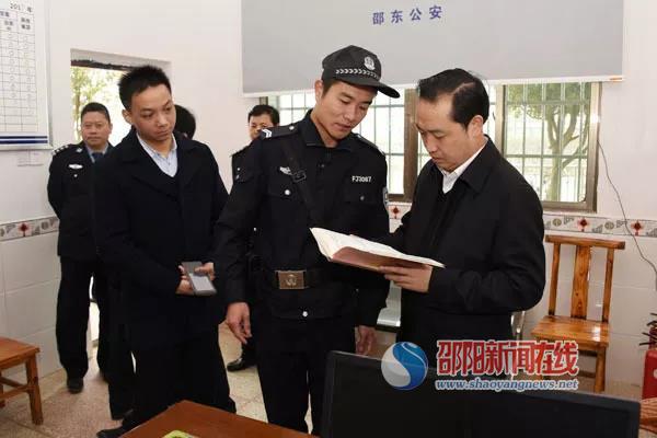 吴巨培同志一行首先来到邵东县公安局廉桥派出所视察。他仔细询问了廉桥派出所的警力配置、辖区的社会治安状况、辅警管理等情况。当听说廉桥派出所于今年被评为“全国优秀公安基层单位”时,吴巨培同志对该所的工作成绩给予了充分肯定。