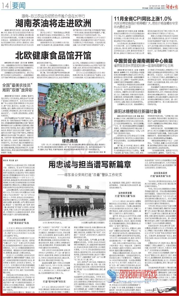 ▲图为《湖南日报》2017年12月13日报道文章原标题:用忠诚与担当谱写新篇章——邵东县公安局打造“四最”警队工作纪实