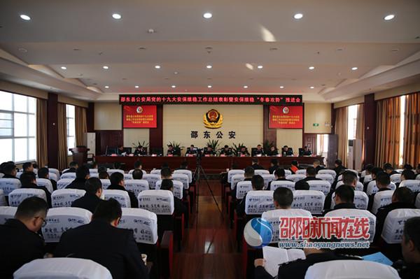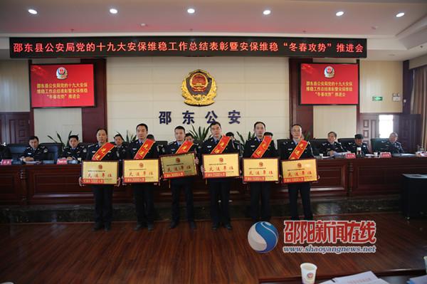 邵阳新闻在线讯(通讯员 何利明)12月25日上午,邵东县公安局召开党的十九大安保维稳工作总结表彰暨安保维稳“冬春攻势”推进会。邵东县副县长、公安局局长谢伟宏,县局领导班子成员,局属机关单位民警和乡镇派出所民警等同志参加会议。会议由公安局政委徐怀友同志主持。