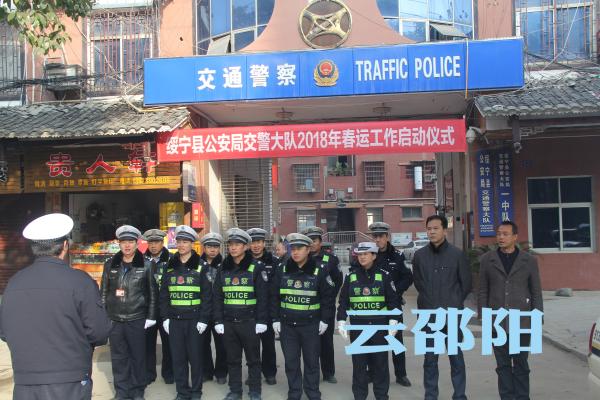 邵阳新闻在线讯(通讯员 尹志恒)2月1日上午,绥宁交警大队组织部分民警、辅警和县湘运公司、顺达公司等客运企业代表,在大队门口组织开展春运启动仪式。