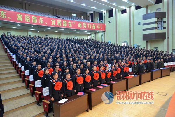 谢伟宏同志作了题为《学习新精神实践新理念迎接新挑战努力推动邵东公安工作再上新台阶》的工作报告。谢伟宏同志指出,2017年,邵东公安在县委、县政府和市公安局党委的坚强领导和统一部署下,紧紧围绕省厅“两加强两提升”、“三个一流”警务战略,以及县委、政府工作大局,以“创建全省一流县级公安机关”为目标,勇于作为,敢于创新,在政治建警、维护稳定、服务大局、严打整治、治安掌控、警务改革、基层基础建设等七个方面实现新突破,开创了邵东公安工作崭新局面。这一年,做了一些多年来想干而没有干成的事,实现了一些多年来想实现而没有实现的任务目标:从近130多个县级公安机关中脱颖而出,荣获“全省优秀公安局”荣誉称号,进入全省一流方阵;自主研发的“互联网+‘一村一辅警’”掌上警务平台在全省第二届“微改革、微创新”大赛中斩获金奖;党的十九大安保工作排全市第一,荣记集体三等功;荣获全省公安机关打黑除恶、信访工作、思想政治工作先进单位,全市公安机关绩效评估、“狂飙行动”、执法规范化建设、执法信息化建设先进单位、全县绩效考核、维护稳定、综治工作、信访工作、重点民生实事工作、安全生产工作先进单位等荣誉称号;廉桥派出所被评为全国优秀基层派出所。
