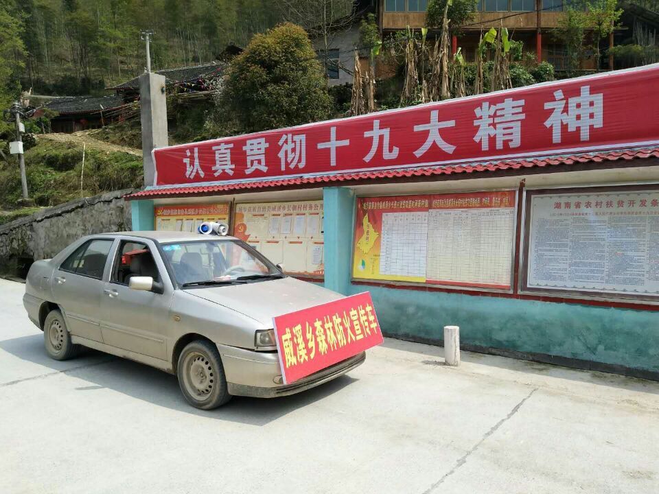 图为4月3日,一辆宣传车行进在该乡长佃村境内进行宣传。