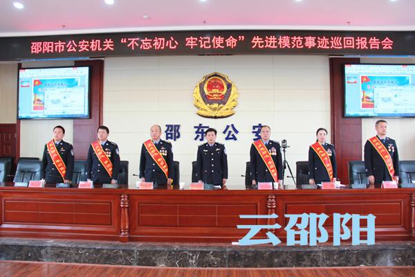 报告会上,邵东县公安局唐双喜、双清公安分局呙文武、隆回县公安局匡慨、绥宁县公安局康顺丽、洞口县公安局刘俊、武冈市公安局“一村一辅警”熊大吉等6名先进模范用朴实的言语、感人的事迹生动诠释了人民警察如何践行“对党忠诚、服务人民、执法公正、纪律严明”的总要求,为全市公安民警树立了学习的榜样。
