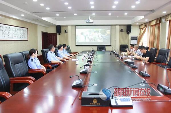 罗强一行首先在会议室观看了“一村一辅警”专题宣传片。“听说邵东县公安局在'一村一辅警'管理等方面积累了丰富的工作经验,我们今天特意来此学习。”在座谈会上,双方就“一村一辅警”招聘模式、管理情况、“八员“职责、硬件设施、经费保障等方面进行了深入交流和探讨。