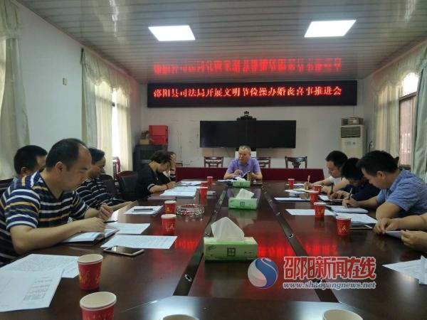 邵阳新闻在线讯(通讯员 周志伍)为大力弘扬勤俭节约的传统美德,推动移风易俗,破除陈规陋习,促进党风政风和社风民风持续向善向上,5月29日,邵阳县司法局召开文明节俭操办婚丧喜事推进会。