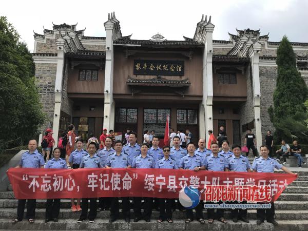邵阳新闻在线讯(通讯员 尹志恒)“红军不怕远征难,万水千山只等闲”,为庆祝建党97周年,深刻体验红军长征精神,提升党员素质,增强党组织凝聚力,6月30日,绥宁县公安局交警大队组织20余名党员到贵州省黎平县“黎平会议”革命历史纪念馆开展“不忘初心,牢记使命”重走红军路主题党日活动,接受爱国主义教育。