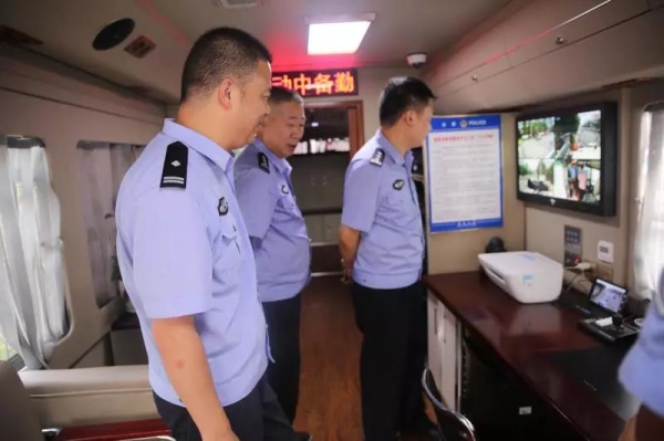 在对县政府周边安保维稳工作进行督导时,谢伟宏要求县局巡特警大队人员要坚持常态化巡逻,加强治安管控,一旦有突发事件发生,要快速妥善处置好,确保社会安定。谢伟宏还参观了“邵阳快警”移动警务平台,并查看了视频监控系统听取了有关人员就县城治安防控和预警出警情况等介绍。