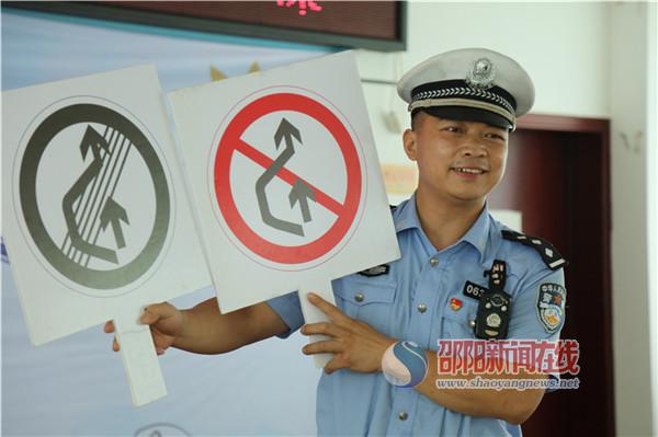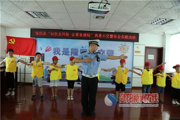 活动中,隆回交警大队匡慨首先对孩子们进行了安全教育的岗前培训,重点对如何制止行人闯红灯及执勤时如何注意自身安全进行了详细的讲解。随后,孩子们在民警的带领下,分成四大组来到人流量和车流量比较集中的神龙宾馆十字路口实地观摩路口交通指挥,并模拟交警执勤,进行交通安全劝导体验。