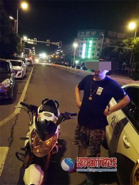 邵阳新闻在线讯(通讯员李娜)8月7日晚24时许,邵东交警大队接到群众报警称:在百富广场附近,有人深夜飙车,噪声很大,严重扰民。大队接到报警后,立即安排一组警力进行查处。在百富广场沸点网吧处发现一辆无牌大排量摩托赛车往龙城宾馆方向飞驰,机动组立即安排警力在兴和大道与金龙大道交叉口将该车拦截。经检查,驾驶员张某景年仅17岁,系无证驾驶,摩托车未按规定悬挂机动车号牌且未年检无保险,一旦发生交通事故不堪设想,民警依法将该摩托车扣留,并依法对驾驶员进行相应的处罚。