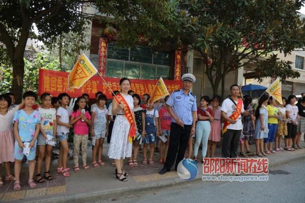 邵阳新闻在线讯(通讯员 彭晓艳)9月5日,隆回交警将“护学旗”送到周旺镇中心小学,周旺镇中心小学路况复杂且车流量大,民警针对学校所处复杂路段,给学校授予了“护学旗”,同时也倡导过往的驾驶人停车礼让“护学旗”。