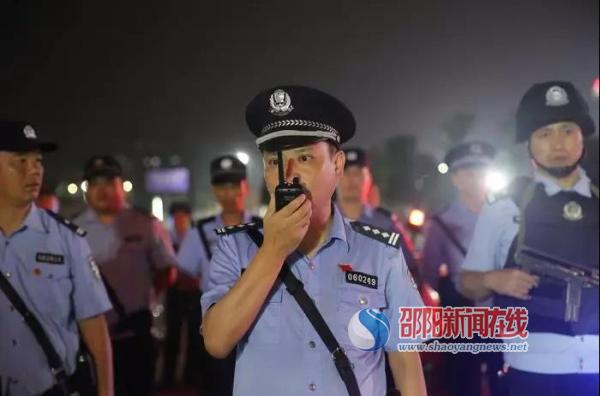 图为邵东县副县长、公安局长谢伟宏现场向省厅汇报邵东大巡防工作