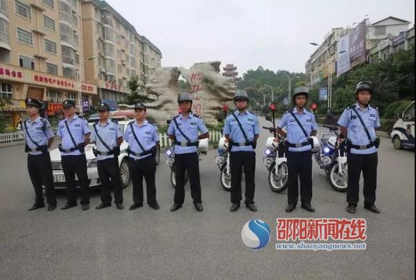 9月16日16时,邵东县城昭阳公园,巡逻警力着装规范,警容严整,精神振作。 邵东县公安局整合各警种资源,加强大巡防的力量,从“邵阳快警”、巡特警大队、派出所、“一村一辅警”、交警大队抽调警力组成巡逻队,对街面进行24小时不间断巡逻,并加强对广场、车站、公园、学校等人员密集场所的重点巡逻,实现巡逻警力覆盖最大化。