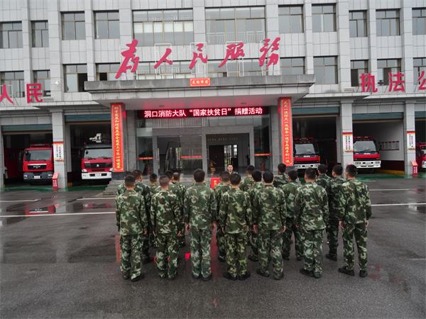 为进一步弘扬中华民族扶贫济困、人心向善的传统美德,努力营造社会各界力量关心关注、共同参与脱贫攻坚的良好氛围,湖南省洞口县消防大队积极响应党中央、国务院“国家扶贫日”主题活动号召,10月25日上午,大队党委组织大中队全体指战员、政府专职消防员和文员开展扶贫集体募赠活动。在大队领导的带领下,大家涌跃捐款,你50我100,短短时间内,就捐款1790元。随后,按照洞口县政府的安排,列出募捐花名册,将捐款统一打入县慈善办指定银行帐户。 近几年来,洞口县消防大队指战员接好宋文博同志的“接力棒”,始终将“文博”精神作为激励指战员奋发向上、推动部队创先争优活动的重要法宝,把亲民、爱民、为民的光荣传统发扬光大,将爱民之情延续下去。积极开展各种形式的爱民实践活动,形成了以“安老、扶幼、助学、济困”为主要内容的爱民新格局。