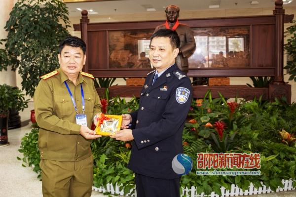 11月14日,老挝万象市公安局常务副局长通萨瓦.端占达翁一行在邵阳市公安局常务副局长肖国清、湖南省公安厅国合处副处长王亚梅等的陪同下至邵东开展警务交流。邵东县副县长、县公安局局长谢伟宏,县公安局政委徐怀友热情接见。