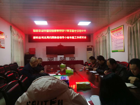 邵阳新闻在线讯(通讯员 罗小亮)11月22日上午,邵阳县司法局召开“扫黑除恶”专项斗争领导小组专题会议,及时传达市、县近期召开的扫黑除恶专项斗争工作推进会议精神。