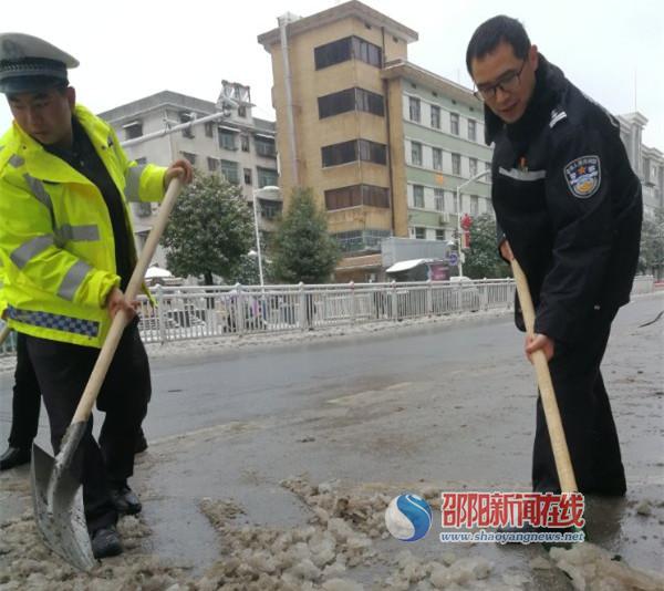 邵阳新闻在线讯(通讯员 罗敏)元旦假期,隆回县辖区迎来入冬以来的第一次大雪天气。面对如此困境,坚守在一线的隆回交警全力以赴抗冰雪、保畅通、护平安,为人民群众的安全出行保驾护航。