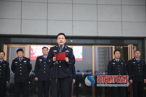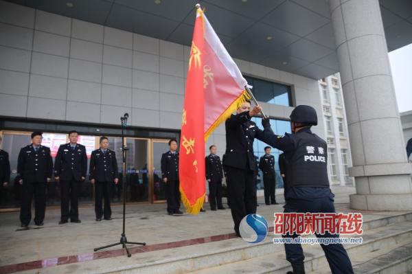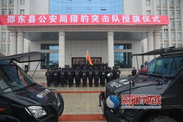 当天上午,邵东县公安局举行“猎豹突击队”授旗仪式。副县长、公安局长谢伟宏,县公安局全体局领导,猎豹突击队全体队员、“邵阳快警”等参加仪式。仪式由县局政委徐怀友主持。
