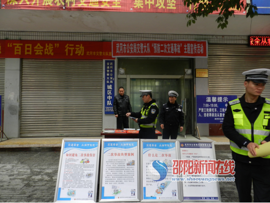 邵阳新闻在线讯(通讯员 彭学煜 刘丽容)为进一步加强群众交通安全意识,普及交通事故发生后安全防护知识,有效预防和减少二次事故发生,倡导文明交通。2月25日上午,武冈交警大队交警中队民警在大队门前路段开展“预防二次事故”主题宣传活动。