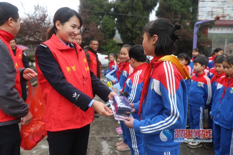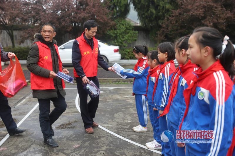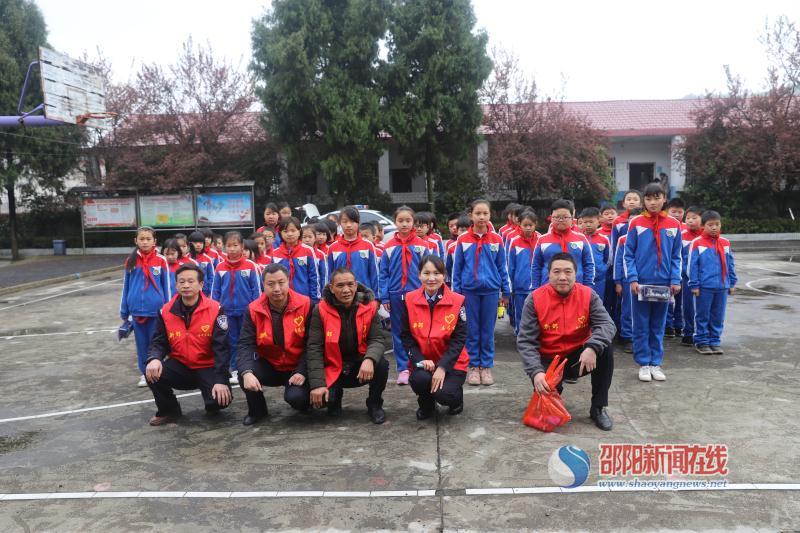雀塘麻溪村是新邵交警大队的扶贫联点村。当天9时,该大队6名民警志愿者在工会主席申续华的带领下,带着笔和文具盒等学习用品来到雀塘镇麻溪完小开展扶贫帮困捐赠志愿服务活动,这已是志愿者们第二次来到该学校送爱心了。